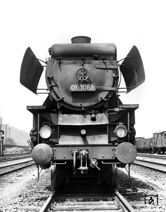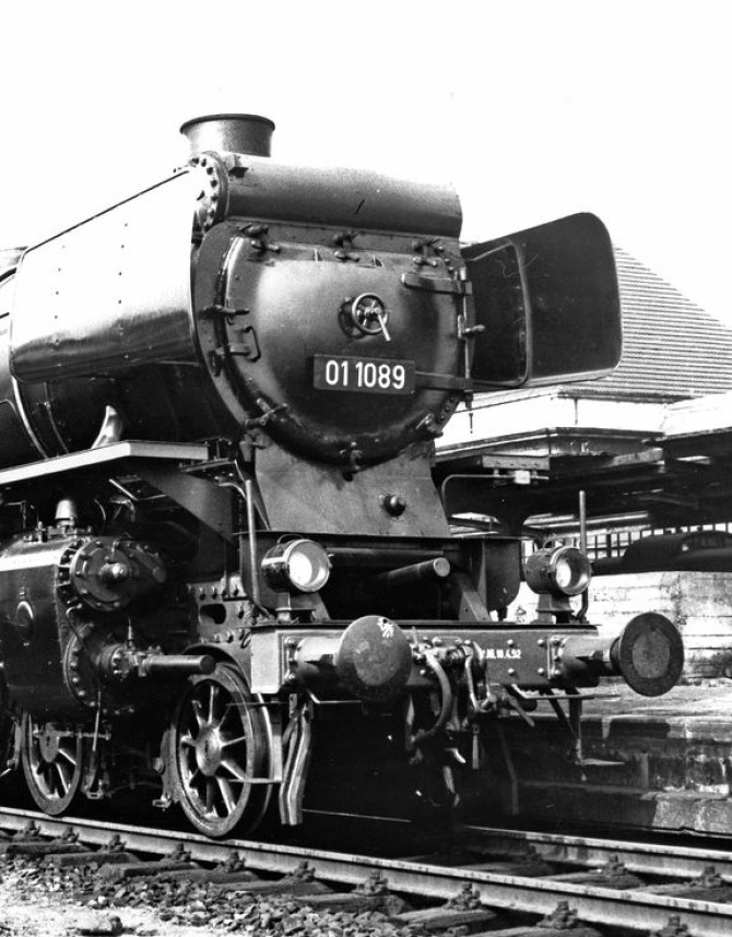 Hier die markante Front der 01 1089 mit Altbaukessel, aber ohne Stromlinienverkleidung.