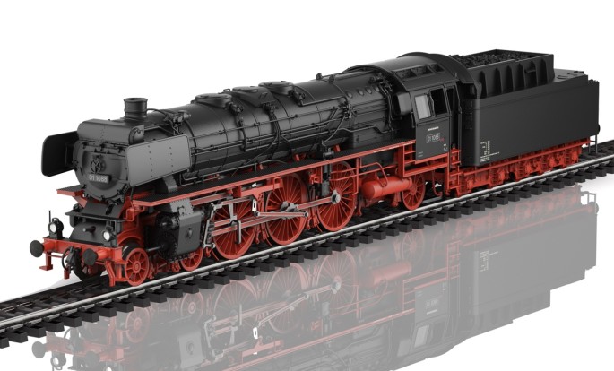 Das Modell dieser 01.10 wurde komplett neu konstruiert und mit modernsten Funktionen ausgestattet. Dabei ist die Detaillierung auf höchstem Niveau. Obwohl es bei Märklin/TRIX in der Vergangenheit bereits eine 01.10 (Neubaukessel) gab, handelt es sich um eine komplette neue Entwicklung, die neue Maßstäbe setzt. Ausgestattet ist das Modell mit einem digitalen Sounddecoder, der zahlreiche Soundfunktionen möglich macht. Des Weiteren besitzt das Modell einen Raucherzeuger mit geschwindigkeitsabhängigem, dynamischen (gepulstem) Rauch. Die schwere Metallausführung gewährleistet hervorragende Lauf- und Zugeigenschaften und eine hochwertige Detaillierung. Die digital schaltbare Triebwerksbeleuchtung schafft besondere Atmosphäre im Modell-BW. Natürlich kann auch die vorbildgerechte 2-Licht-Spitzenbeleuchtung wechselweise geschaltet werden und die flackernde Feuerbüchse rundet den Sound des Kohleschaufelns perfekt ab. Die großen Treibräder der Lok sind mit nur ca. 2 mm besonders flach ausgeführt und wirken extrem filigran. Alle Leitungen, Pumpen und Ventile sind separat angesetzt und bilden das Vorbild genau nach.
